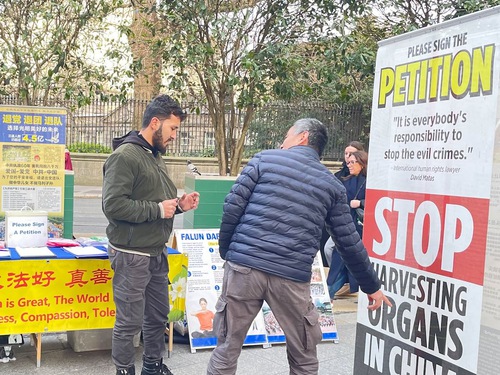 Claire was pushing her bicycle on February 7, when she also stopped to sign the petition to end the organ harvesting. She said she believes that the Western medical system is inefficient or perhaps it is the public’s disappointment in the healthcare system that has encouraged the CCP’s organ harvesting crimes. “When someone says, ‘Go to China and you can have an operation in a few days,’ nobody’s thinking about this or thinking about, okay, hang on, how is this possible? Am I contributing to this horrendous trade? This horrendous incitement and persecution of people. People don’t think this way because the health system in their country is on the verge of collapse, and people are under tremendous pressure.”