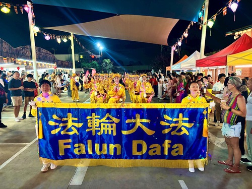 A lively temple fair was held at Braybrook in western Melbourne on Lunar New Year’s Eve, February 16, drawing people to welcome the new year. The Falun Dafa practitioners’ waist drum team was invited to start the fair and later paraded through the fair ground several times.