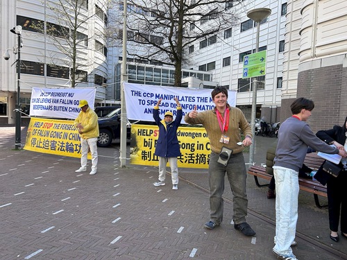 (Minghui.org) Practitioners held an event in front of the House of Representatives in The Hague (Den Haag) from April 7 to 9, 2026. They talked to the newly sworn-in Dutch government officials and Members of the House, and told them about the Chinese Communist Party’s (CCP) persecution of Falun Dafa. They also called on the Dutch government to support practitioners and help end the persecution.