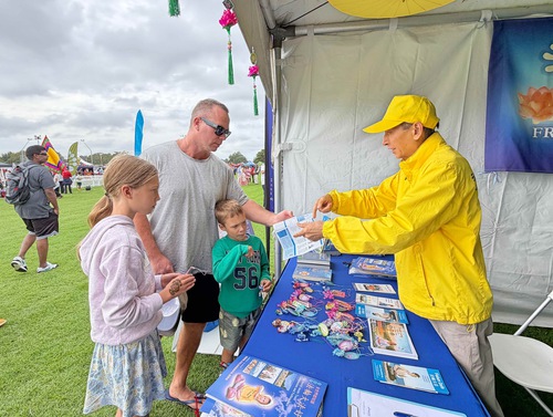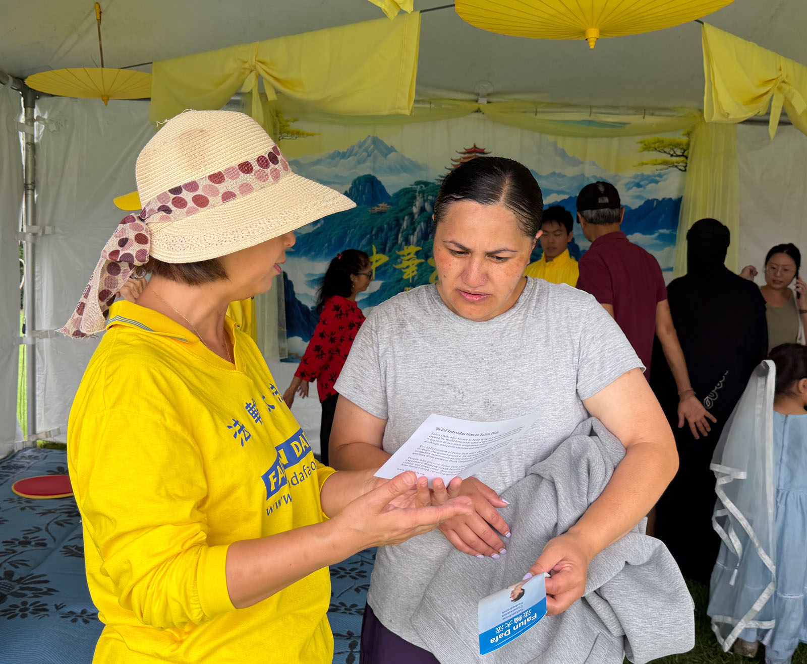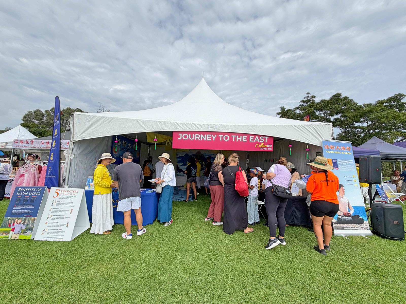 People learn about Falun Dafa during Culture Fest 2026 in Auckland on March 29.