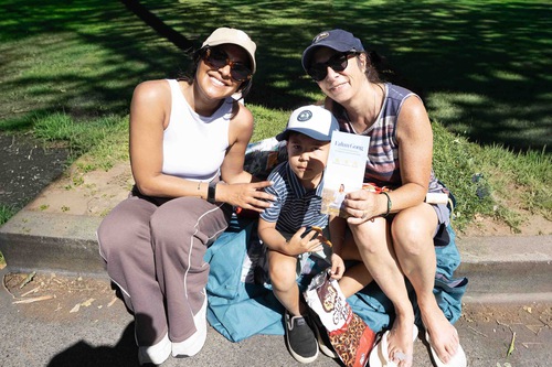 Jackie and her children watch the parade.