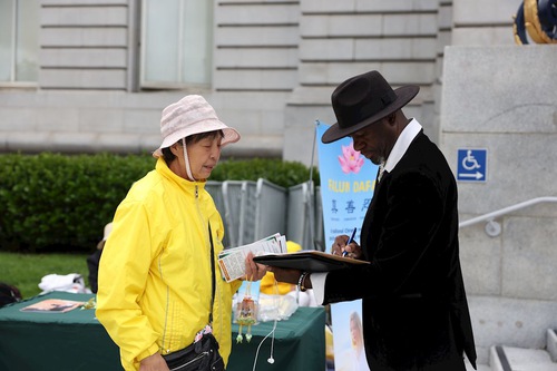 Ms. Li Ke, a Chinese woman who lives in San Francisco, said she always wanted to attend a Falun Gong activity. When she learned of the event that day, she came to show her support. Holding a sign that read “Remember April 25,” she said, “We should learn from the spirit of the April 25 Appeal. My impression of Falun Gong practitioners is that they are especially honest.”