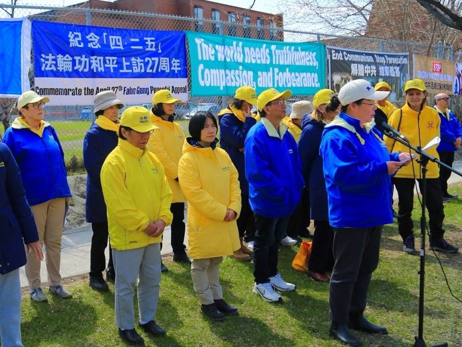 (Minghui.org) Falun Gong practitioners held a rally in front of the Chinese Embassy in Ottawa on April 22, 2026. They commemorated the peaceful protest held on April 25th in 1999, a few months before Beijing launched the nation-wide persecution of Falun Gong. They condemned the ongoing persecution, and called on the public to help end the atrocities.