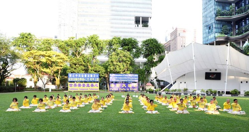 Many Chinese passers-by said they were deeply moved by the practitioners’ event in Singapore. They said that such a scene could never be seen in today’s China, and they took informational materials to learn more about Falun Dafa.