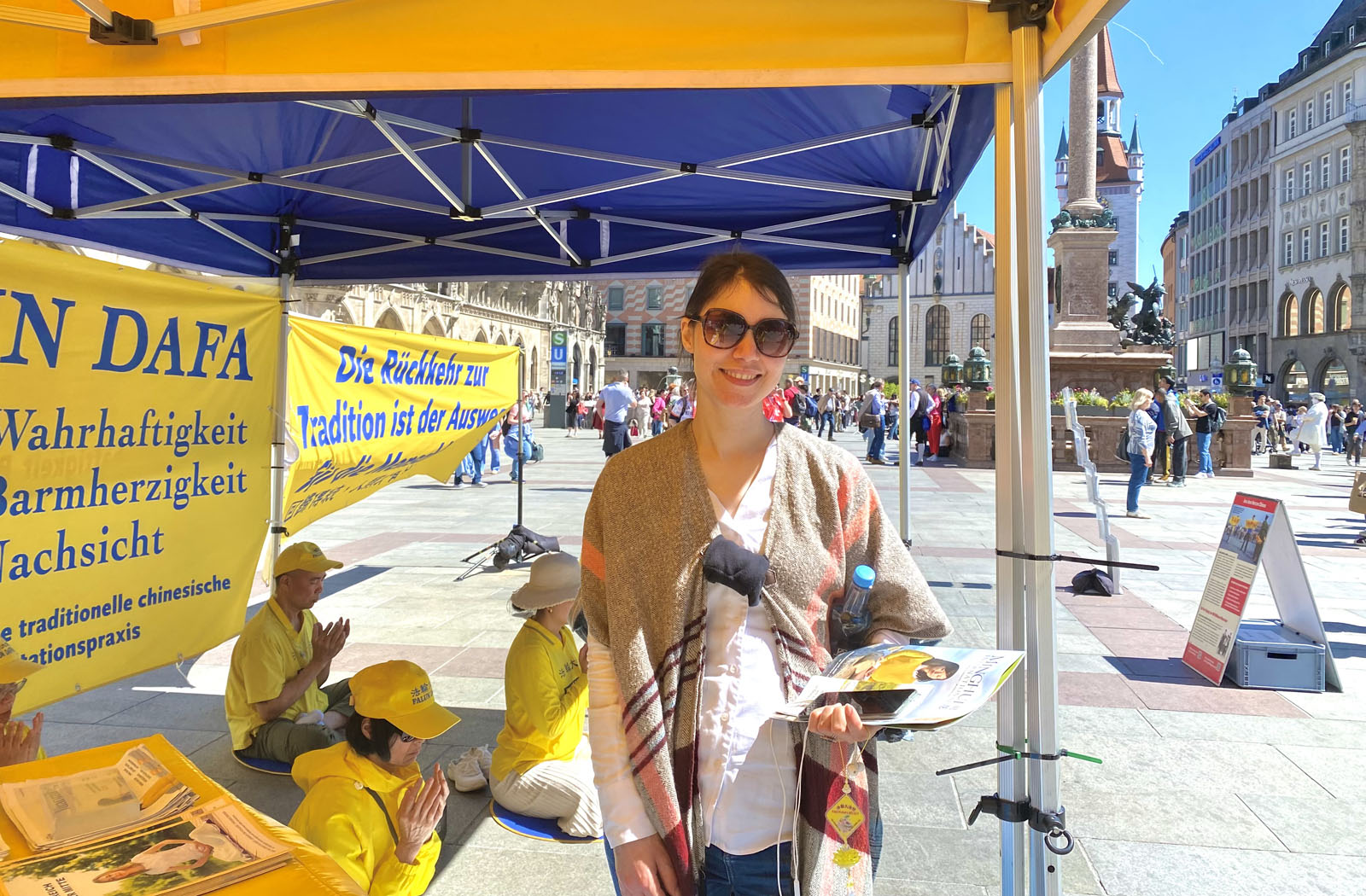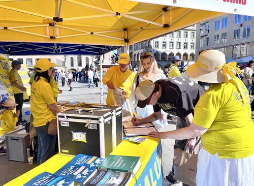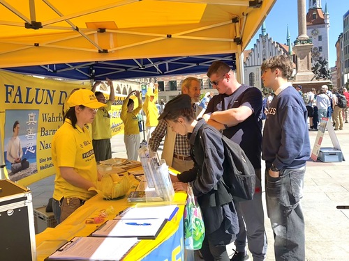 Through the practitioners’ consistent efforts, more people learned about the situation in China. Johanna, an artist who walked by the event at Marienplatz, said she had previously heard about the persecution. She praised the event and said she hopes the persecution will end soon.
