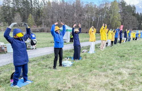 Practitioners went to Mynttorget Square beside Parliament at 1 p.m., did the exercises and collected signatures on a petition calling for an end to the persecution. They introduced the practice to the public and talked about the April 25 appeal in Beijing, the CCP’s persecution, and the CCP’s state-sanctioned forced organ harvesting.
