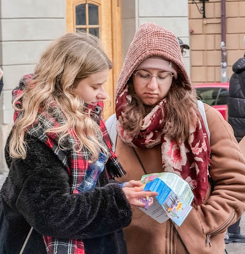 People learn about Falun Dafa.