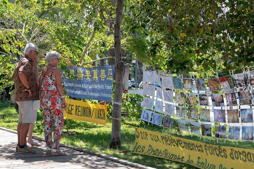 Véronique Hoarau was about to visit a nearby market but stopped at the practitioners’ booth and talked with them for a long time. She not only signed a petition, but said she also planned to attend a practice site near her daughter’s home and learn the exercises.
